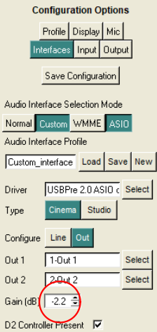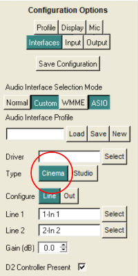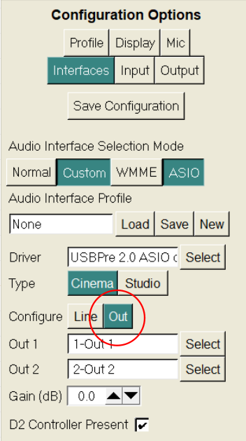 - Connect the interface and start the D2 software. Next select Config→Interfaces→Custom→ASIO or Config→Interfaces→ASIO.